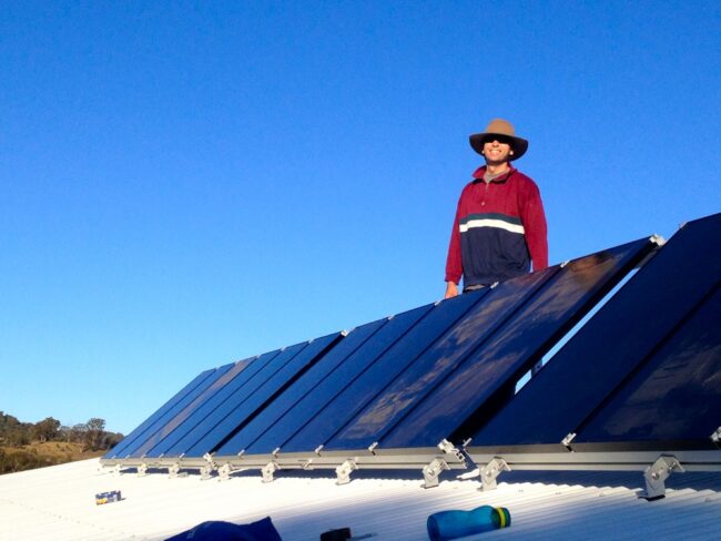Milkwood Farm is now officially 100% solar powered. Yay! 12 CIS solar panels are now affixed to the roof of the top shed and turning sunlight into goodness for power tools and light, as we approach the move-in date for our tinyhouse. Being off-grid as we are (even though our family farm next door is…