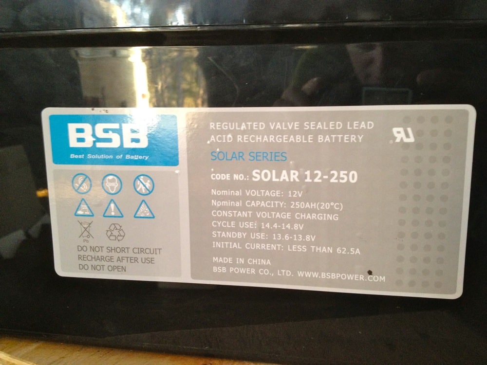 We went for a large bank of Hybrid gel absorbed glass mat valve-regulated lead–acid batteries because the bigger the battery bank, the less you discharge them, and therefore the batteries overall life is increased. Given that batteries are filled with pretty nasty stuff, we wanted to make the most of them for as long as possible to minimize replacements.