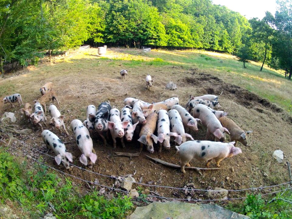 As you can see, this method of pastured/forested pig production is many worlds away from the process of raising industrial pork. It’s a great life for the pig, and their rootling nature means that, when well managed, they can regenerate ground as they go…