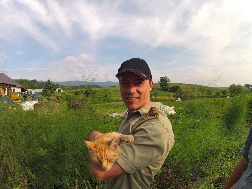 Derek Ewer, Milkwood PDC alumni and Polyface Farm intern. Don’t know if the cat and frog were interning also… probably not.
