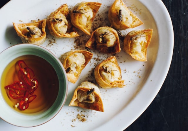 Skye’s crickets and mealworms on the menu at Billy Kwong in Sydney. Image via Broadsheet