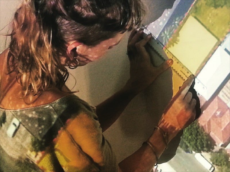 - Set up the projector so the image of your site is projected onto your paper. Make sure the projector is as “square” as possible by setting up the projector at the same height as the paper. Avoid projecting at an angle to the wall. Some projectors have “skew” or “keystone” adjustments to help correct this. The closer you get to “square” the more accurate your projection will be.
