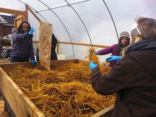 The mushrooms at Growing Power are also grown on, and in, anything that makes sense, and is readily available.