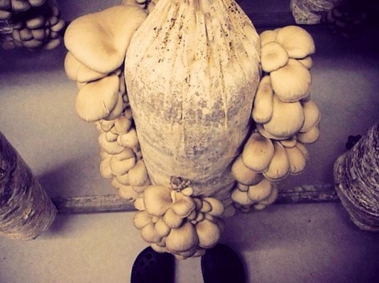 This urban mushroom growing model is a bit different to the ‘coffee-ground oyster mushrooms in deep urban’ model in a few ways.